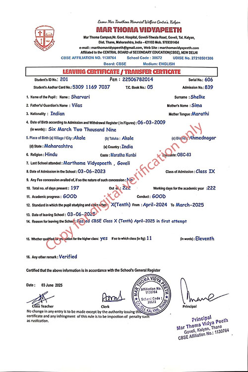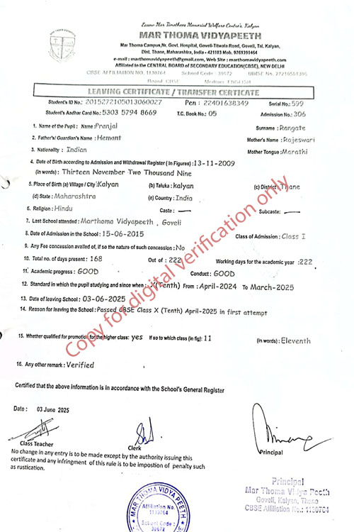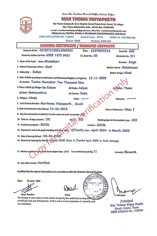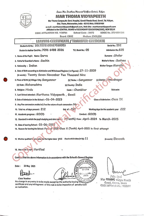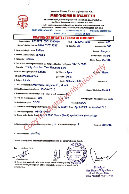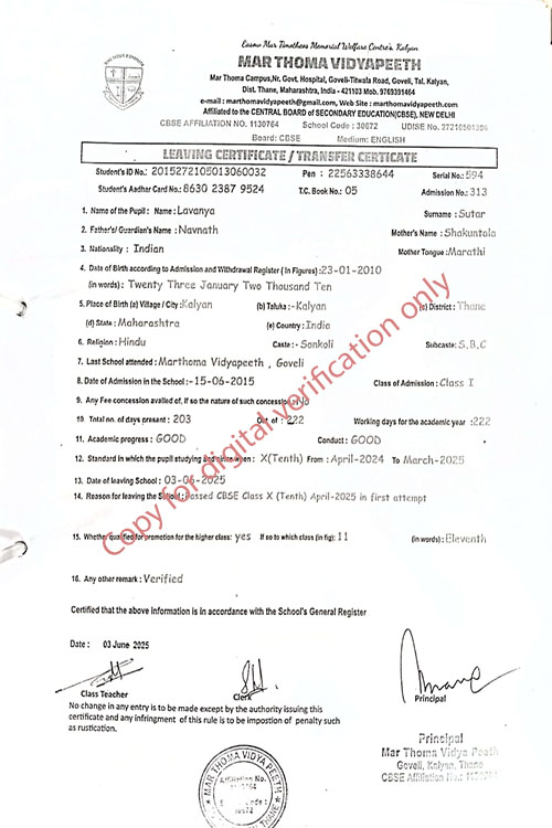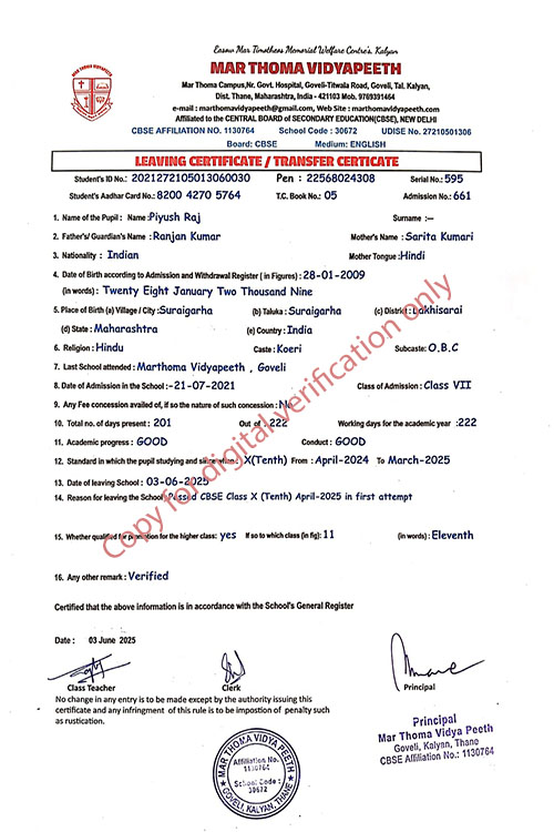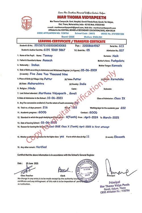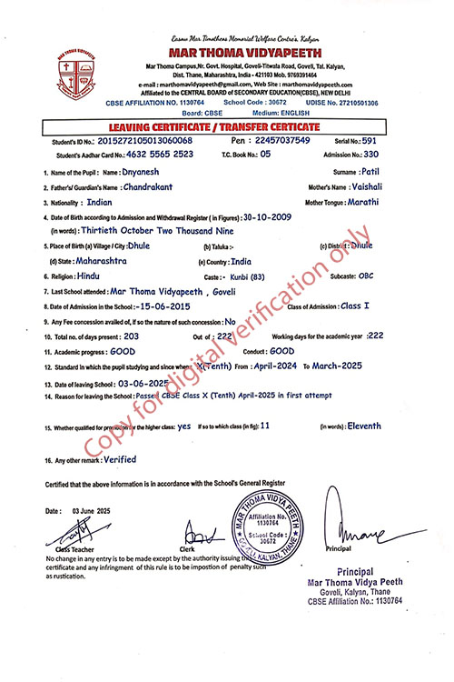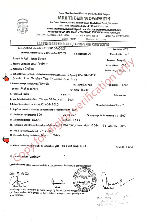 This web page of Mar Thoma Vidyapeeth is designed purely for verification purpose as per mandatory compliance and watermarked as such, to prevent the use for other purposes
