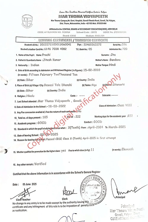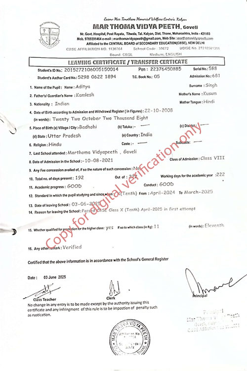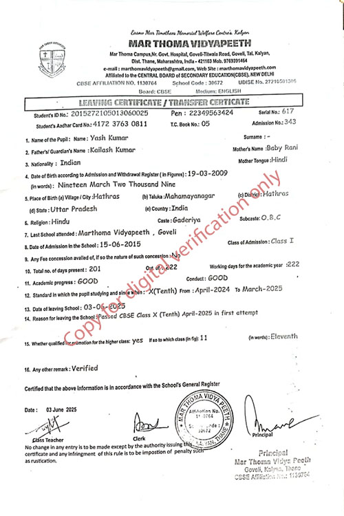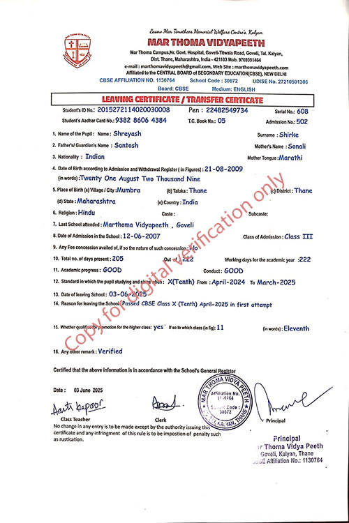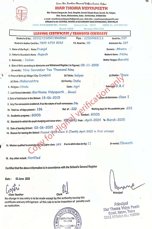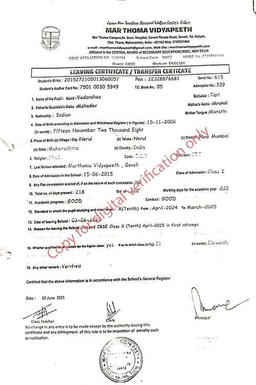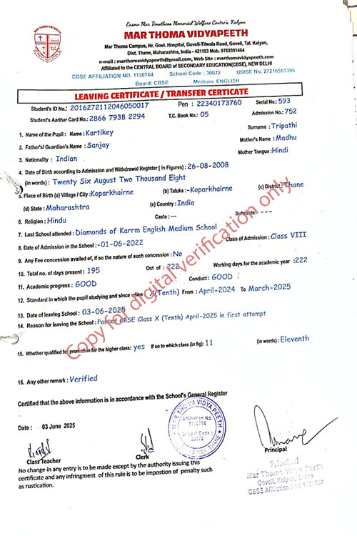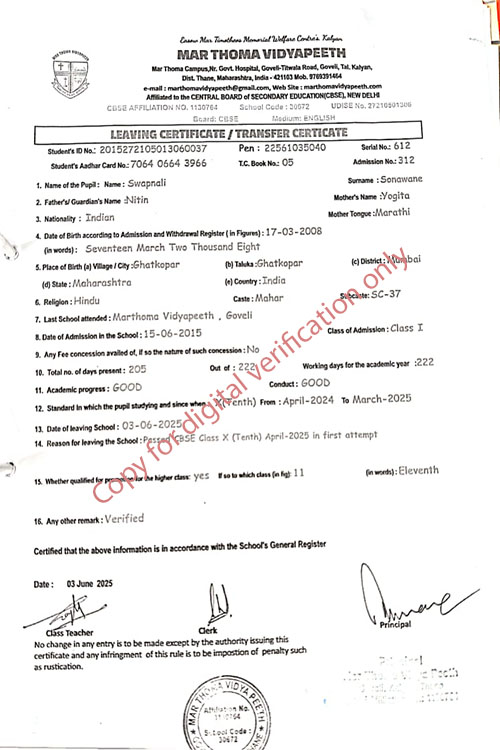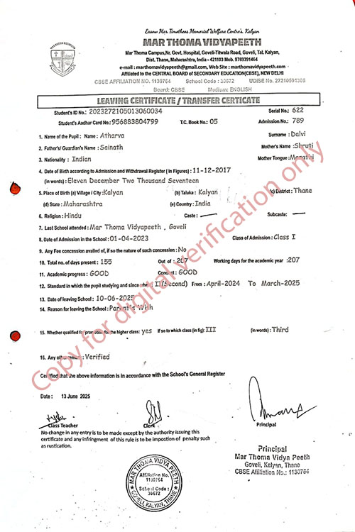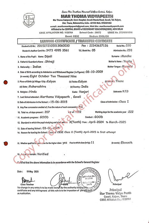 This web page of Mar Thoma Vidyapeeth is designed purely for verification purpose as per mandatory compliance and watermarked as such, to prevent the use for other purposes