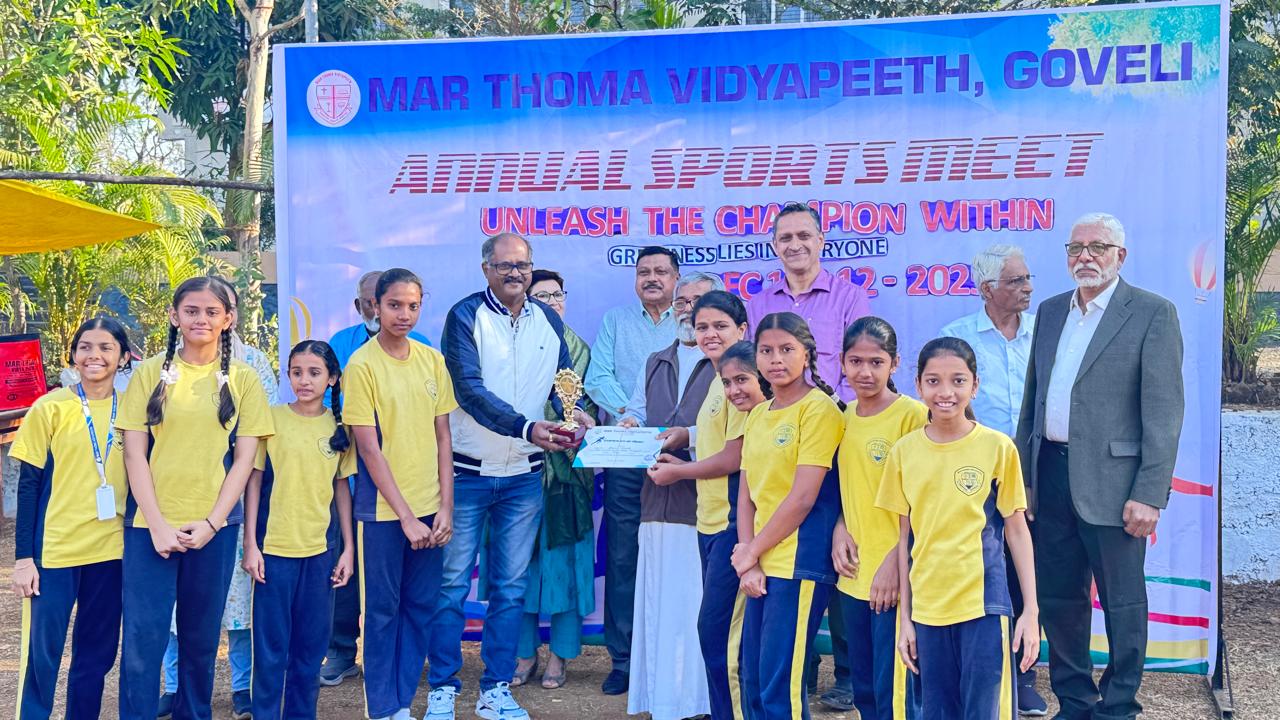 Sports and Health Education is an integral part of NEP 2020 and Mar Thoma Vidyapeeth is committed to promote the talents of children in all areas of sports. The Final Day was a unique opportunity for children to interact with two very special people, Mr. Mervyn Fernandis, three times Olympian, Gold Medalist of Olympics, Hockey India former Captain and Arjuna Awardee as Chief Guest and Mrs. Gail Fernandis, Gold Medalist in Nursing as Guest of Honour.