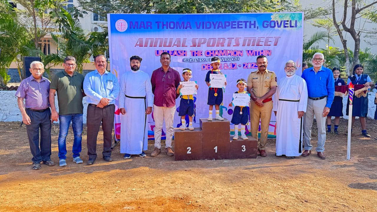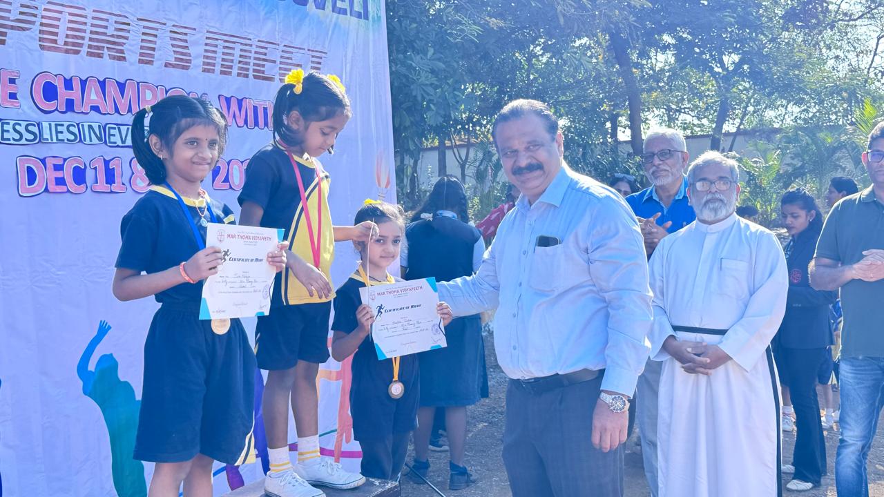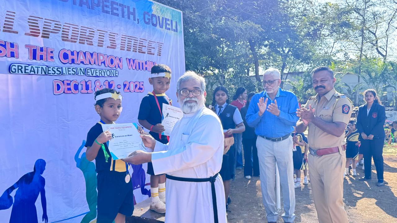 Sports and Health Education is an integral part of NEP 2020 and Mar Thoma Vidyapeeth is committed to promote the talents of children in all areas of sports. Annual Sports Festival is the culmination of an year long preparations and practice of students which makes it so colourful. Shri Pankaj Giri, Sr. Police Inspector, Titwala and Shri Sanju John, ACP(Retd) graced the Meet with their august presence and gave away the prizes.