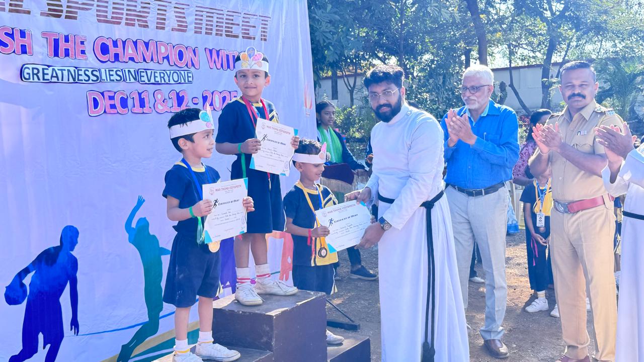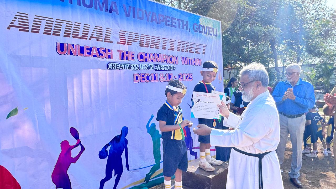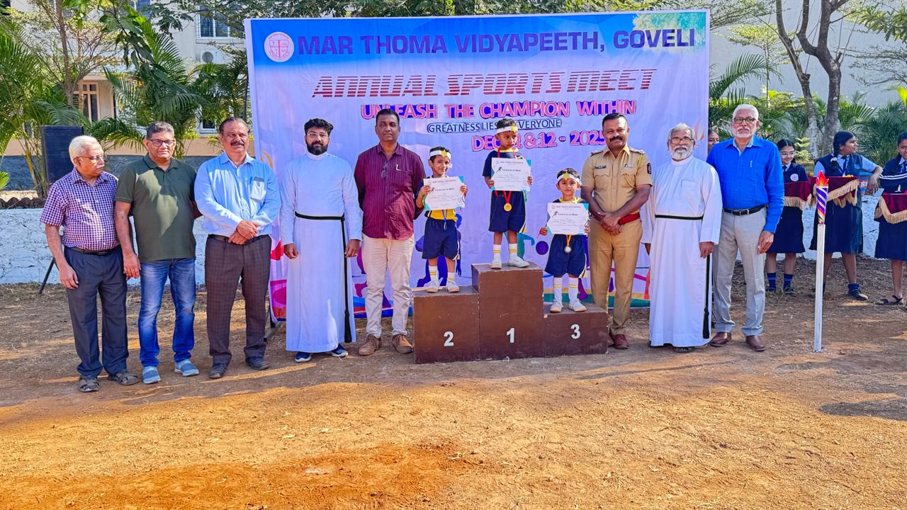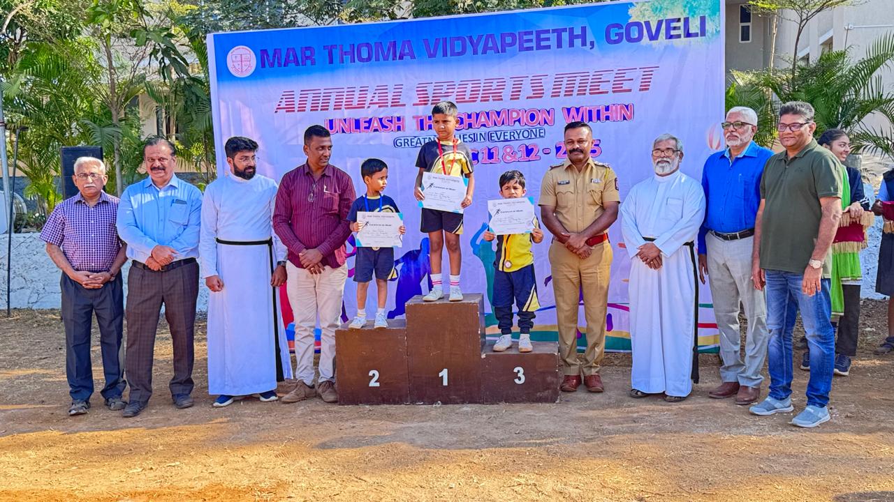 Sports and Health Education is an integral part of NEP 2020 and Mar Thoma Vidyapeeth is committed to promote the talents of children in all areas of sports. Annual Sports Festival is the culmination of an year long preparations and practice of students which makes it so colourful. Shri Pankaj Giri, Sr. Police Inspector, Titwala and Shri Sanju John, ACP(Retd) graced the Meet with their august presence and gave away the prizes.