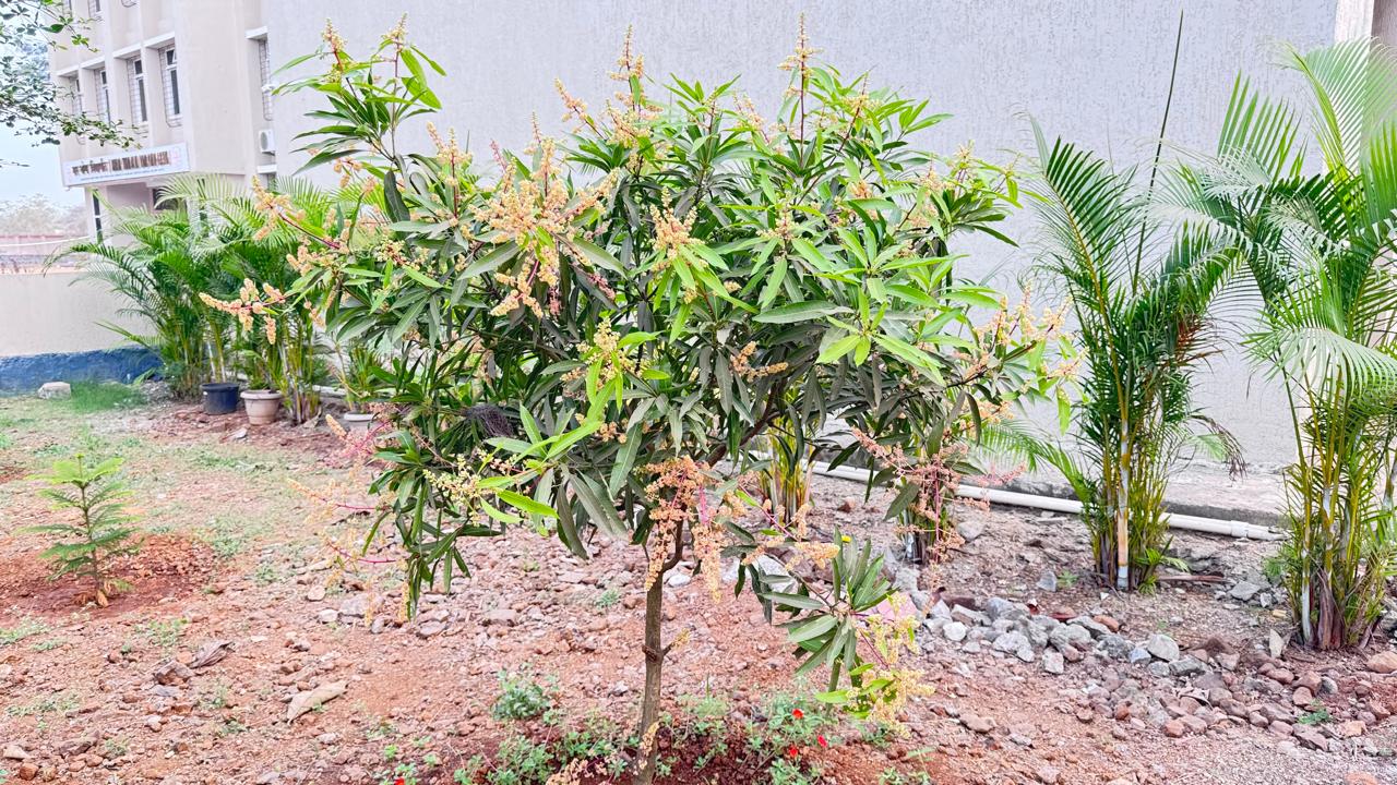Early fruiting Mangoe trees decorate school