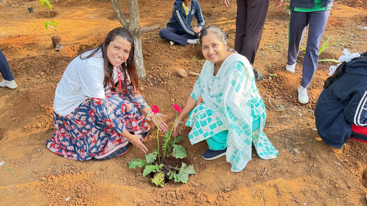 Krutika and Yashashri preparing a plant