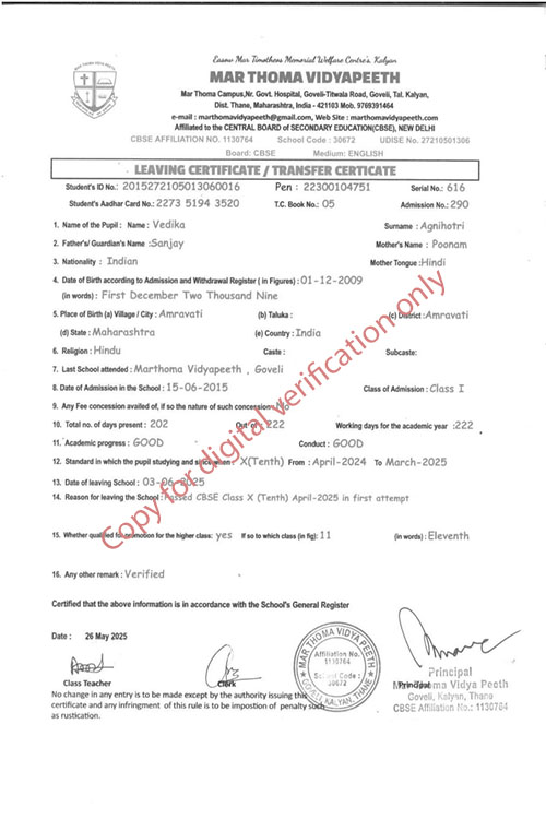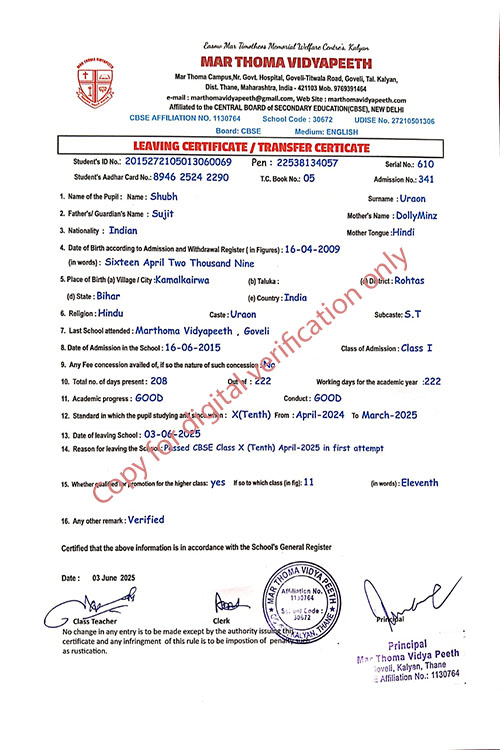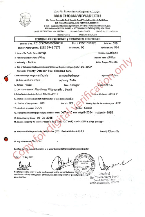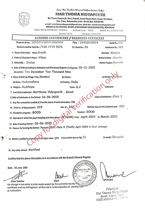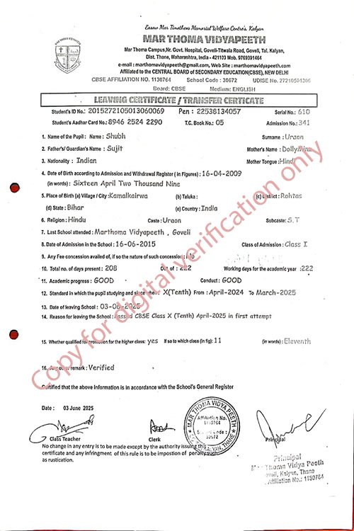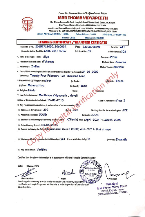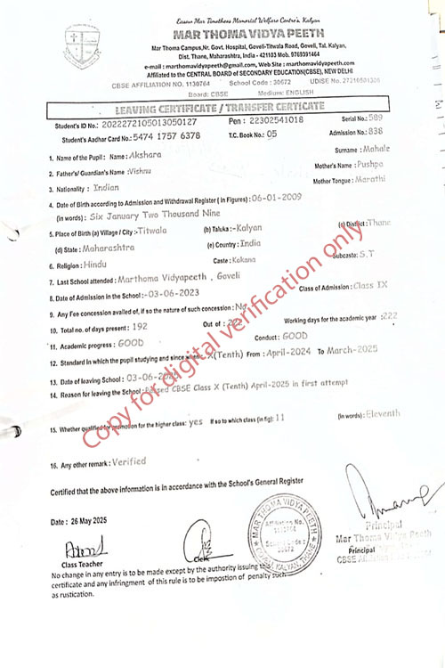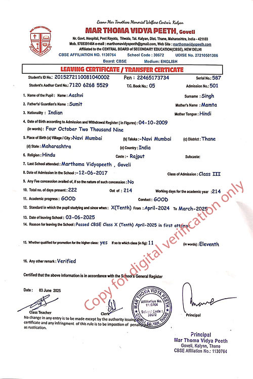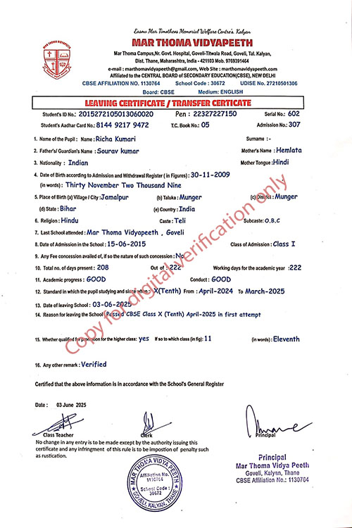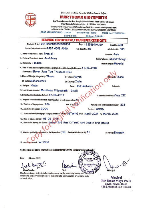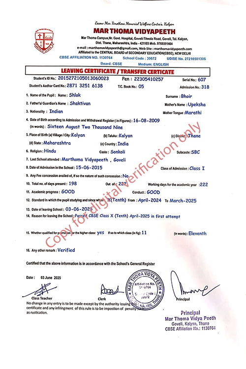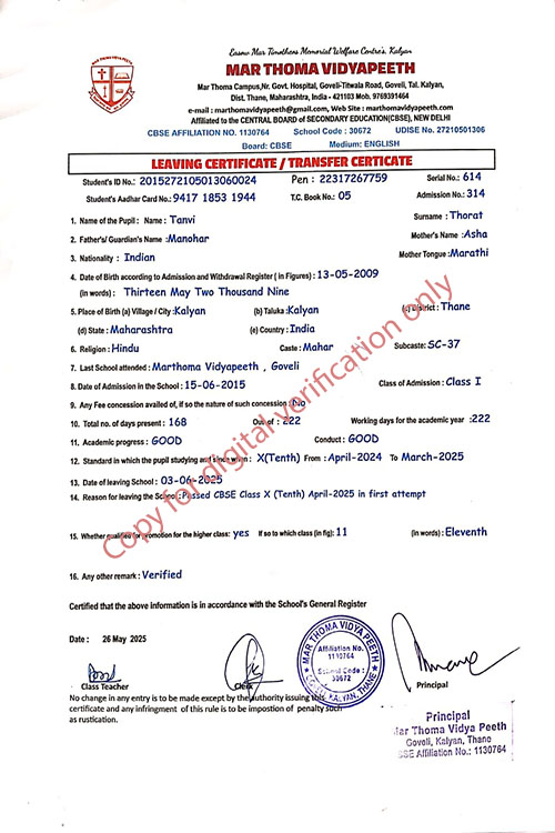 This web page of Mar Thoma Vidyapeeth is designed purely for verification purpose as per mandatory compliance and watermarked as such, to prevent the use for other purposes