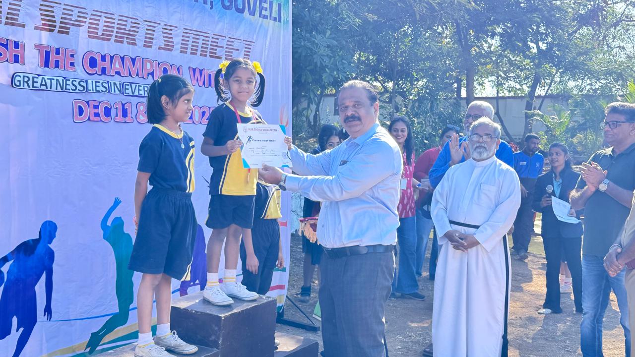 Sports and Health Education is an integral part of NEP 2020 and Mar Thoma Vidyapeeth is committed to promote the talents of children in all areas of sports. Annual Sports Festival is the culmination of an year long preparations and practice of students which makes it so colourful. Shri Pankaj Giri, Sr. Police Inspector, Titwala and Shri Sanju John, ACP(Retd) graced the Meet with their august presence and gave away the prizes.